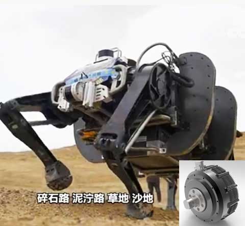 全電驅(qū)動12自由度大型仿生機器人關節(jié),單電機功率6kW,峰值扭矩1200Nm,輸出轉(zhuǎn)速120rpm,單電機重量10kg.